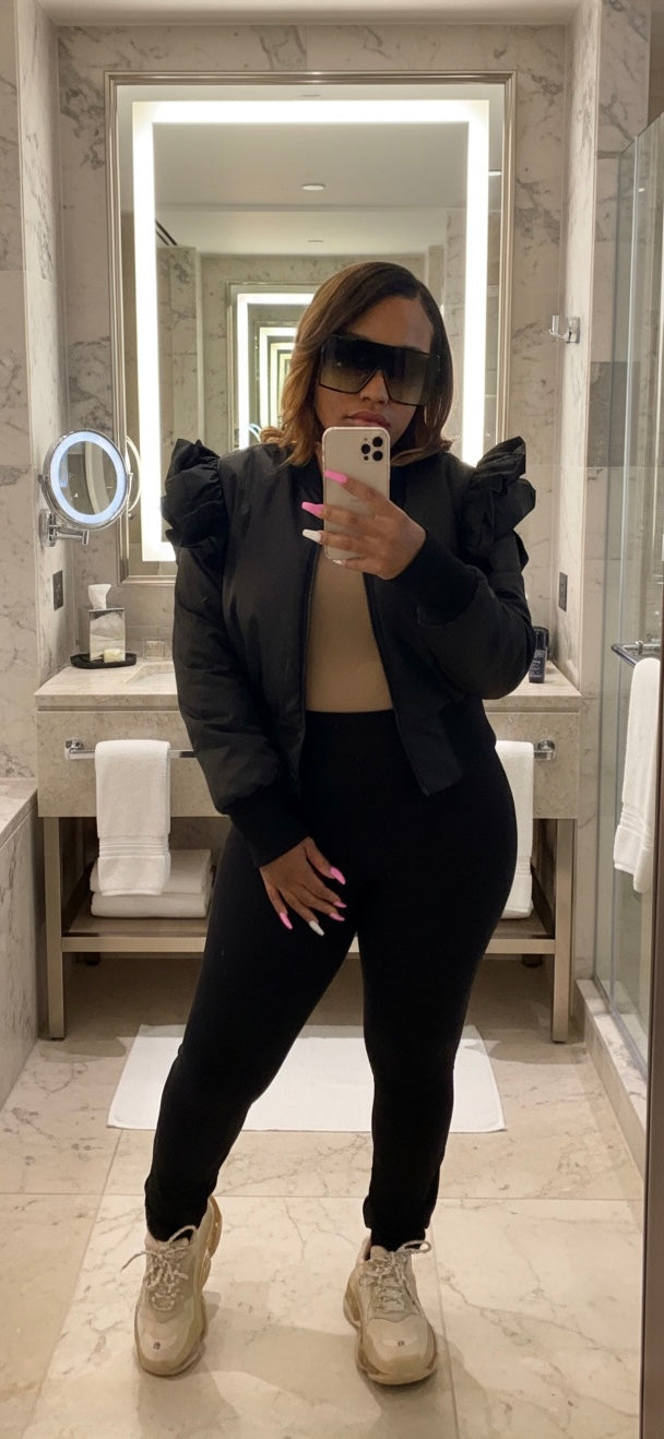 This Ruff'n It jacket features a 2-way zipper, side pockets, and dainty ruffle details for a touch of style. It's designed to fit true to size, making it perfect for all stylish queens looking to add a little extra to their wardrobe.
