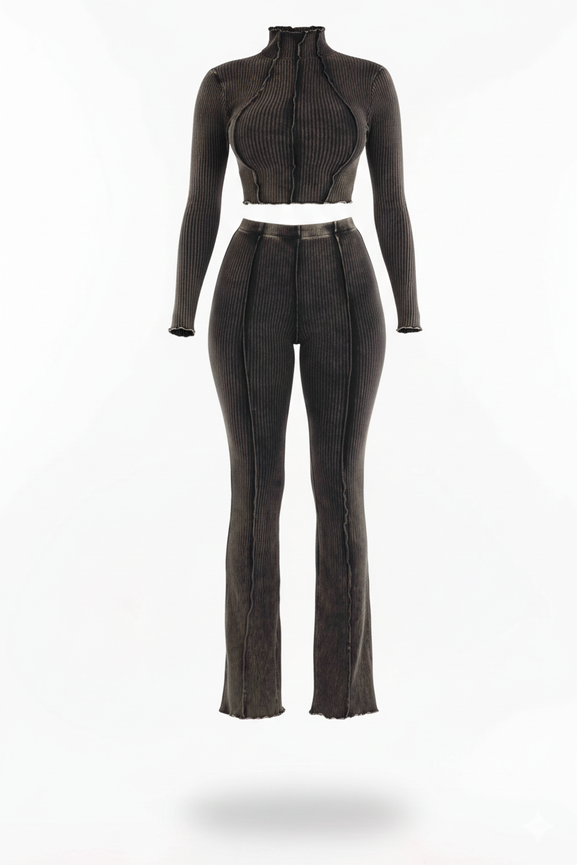 The Yogi Ribbed Set presents effortless comfort with its long-sleeve mock neck top and boot-cut pants. This two-piece set is crafted with an amazing stretch fabric, letting you create versatile looks that can be dressed up or down for any occasion. The mineral washed color is just an added bonus